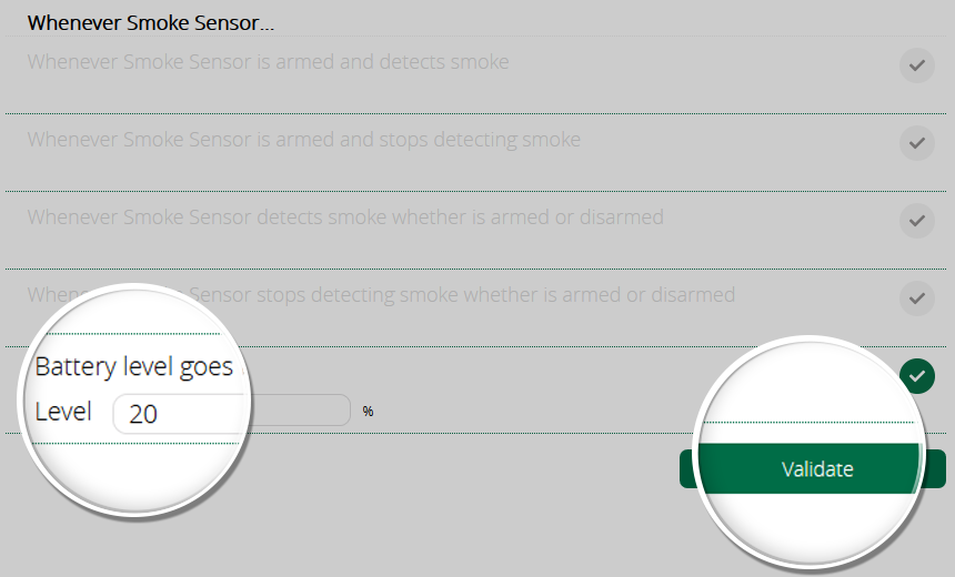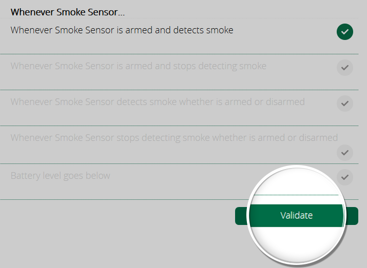 5. Check the option "Whenever Smoke Sensor is armed and detects smoke" and press "Validate"