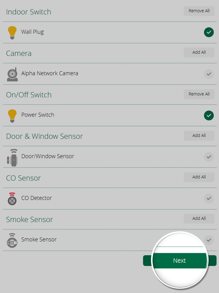 6. Repeat the process for the Smoke Sensor and choose the event "Whenever Smoke Sensor is armed and detects smoke;" the new device triggers should be displayed like in the image below
