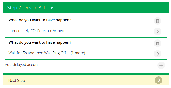 - The additional "Whenever Smoke Sensor is armed and detects smoke" event