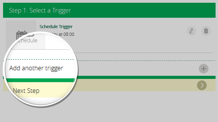 2. Click on the edit icon next to "Step 1: Select a Trigger"