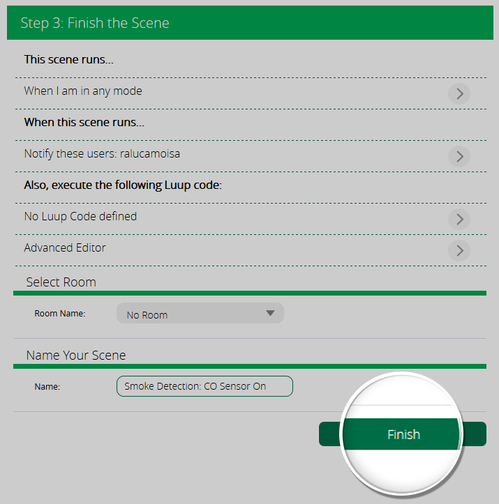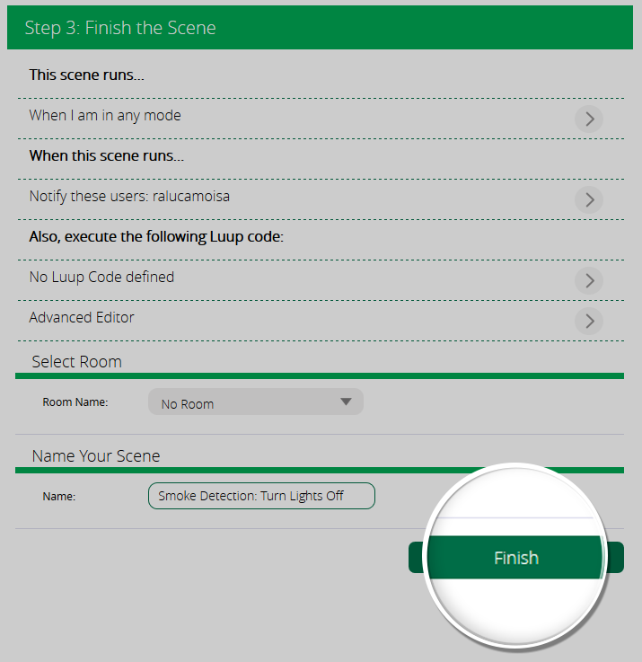 6. Click on "Next Step," update the name of the scene, and press "Finish"