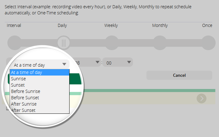 3. To select a moment of the day, choose the "Daily" scheduler, and then select one of the available predefined moments:
