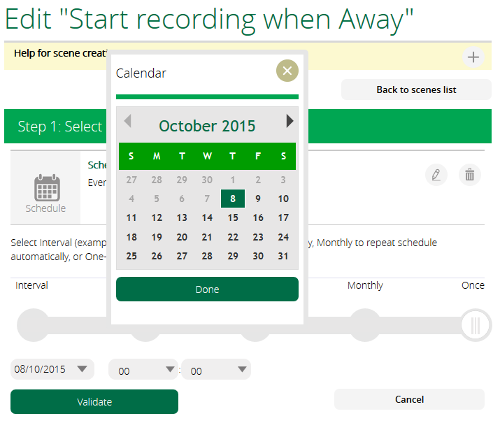 4. Similarly, in order for the scene to run in specific days of the week or of the month, choose the "Weekly" option